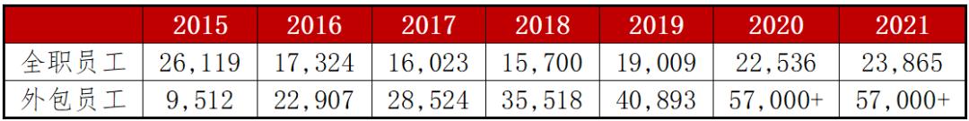 然而,中通透露,截至2021年12月31日,其外包人员超过57,000人。下表总结了中通在全职和外包的员工人数。