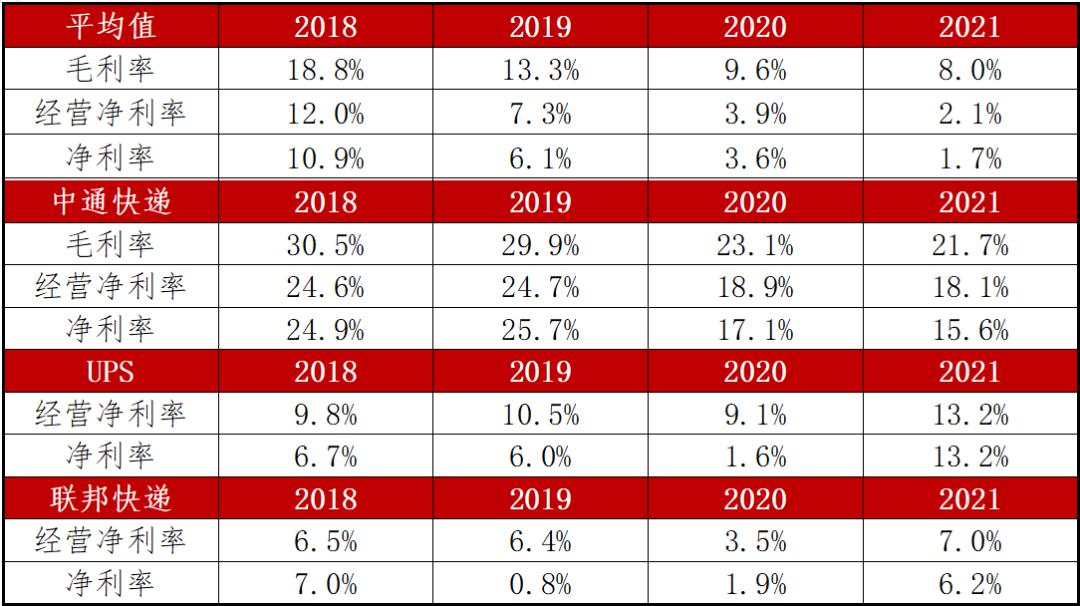 可比公司的平均净利率从2018年的11%下降到2021年的1.7%。与此同时,中通的净利率从2018年的25%下降到2021年的15.6%。
