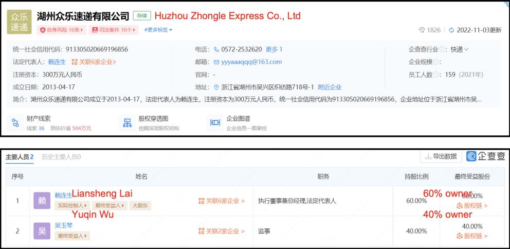 根据这一系列事件,我们怀疑湖州众乐目前正在与中通合作。
