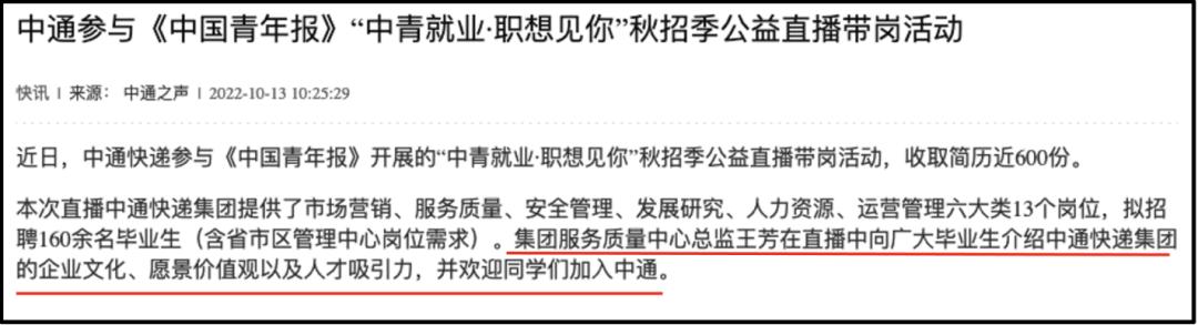 根据我们的研究,这是一种欺诈式陈述。2021年8月的一篇文章显示,中通董事长赖梅松亲自声称,公司为全职员工和外包员工支付了100%的社会保险。