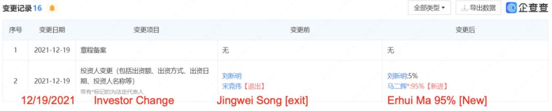 根据股东变更记录,河南中通快递的前股东宋竞伟似乎是中通员工。2021年12月19日,宋竞伟不再是河南中通快递的股东,马二辉成为持股95%的股东。宋竞伟此前持有该公司30%的股权。