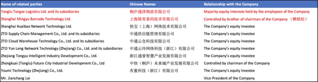 浙江通誉主要股东胡红群是中通的首席运营官。而浙江通誉的法定代表人赖建昌也是中通的关联方。