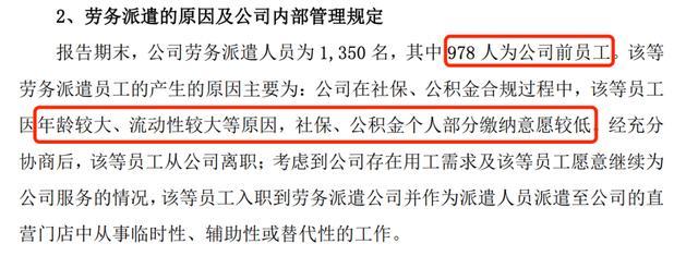 为了挤出利润,老乡鸡选择从人力成本下手。招股书显示,截止2021年末,老乡鸡劳务派遣的1350人员中,有978人为公司前员工。