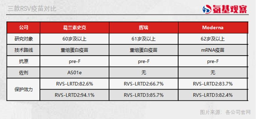 希望与挑战同在。这三款疫苗虽未进行头对头试验,但如果以预防2种或更多RSV相关下呼吸道症状(RVS-LRTD2)的有效率作为统一临床终点,辉瑞、Moderna、葛兰素史克疫苗保护率分别为66.7%、83.7%、94.1%。