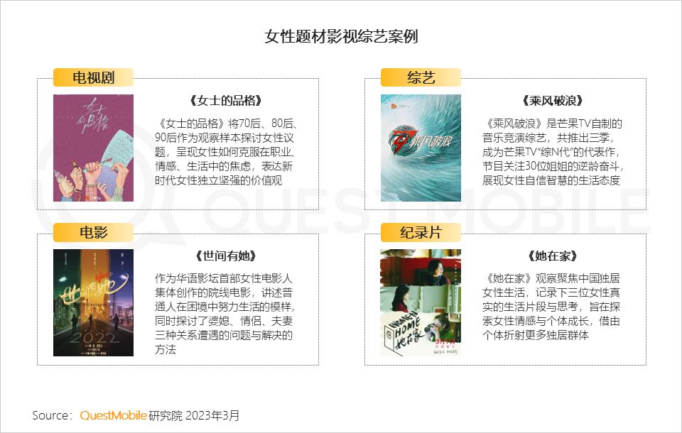 2.1 “她题材”影视剧集、综艺层出不穷,类型多元,彰显女性价值力量,已成为影视创作热点,吸引女性用户关注