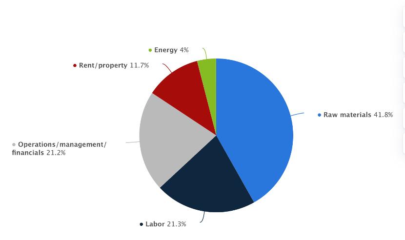 不要着急,我们再回到商家立场,根据statista提供数据,我国餐饮企业经营成本分布大致如下: