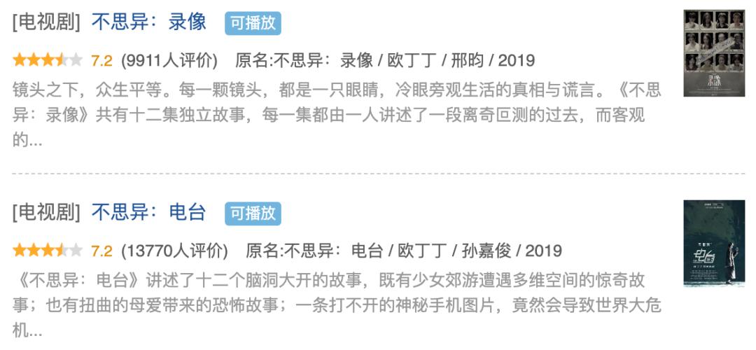 就目前来说,市场上反馈最为热烈的要属武侠悬疑的《念念无明》,豆瓣近4万多人打出6.9分的好成绩,以及《不思异》系列曾在2019年拿下过两部作品达到7.2分的成绩,其余的悬疑微短剧更多属于平台站内热度维持,未能在口碑和市场热度方面,形成一致高度。