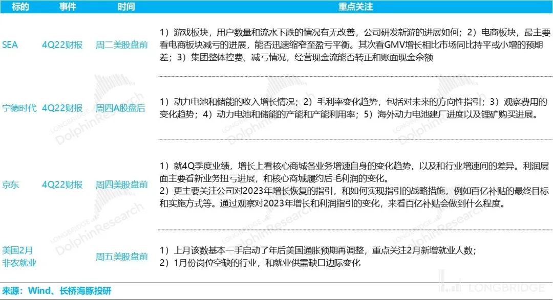 4)京东亮剑,非农就业来袭:本周海豚君关注的公司当中,京东和宁德时代会出四季度和全年财报,两个都是比较重要的关注对象,京东新一年的收入和利润指引会左右市场对今年电商内卷程度的预期,而宁王的业绩基本是新能源板块的风向标。