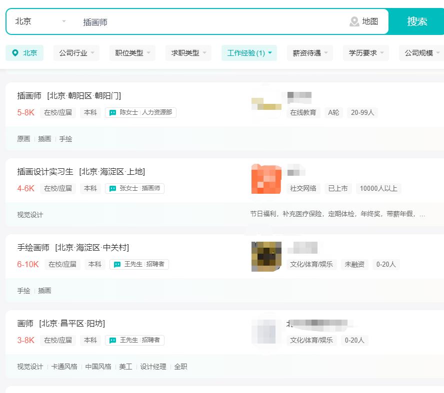 (此处以Boss直聘平台提供的北京市的插画师招聘信息作为参照)