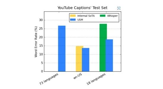 USM已被YouTube用于生成字幕,它还支持自动语音识别(ASR),可自动检测和翻译语言,不仅包括普通话、英语等广泛使用的语言,还包括阿姆哈拉语、宿务语、阿萨姆语等冷门语言。