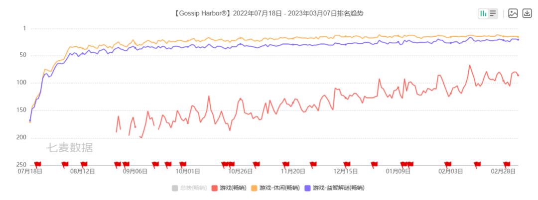 截止到目前,柠檬微趣花费半年的时间将《Gossip Harbor》从最初200名开外稳定在如今100名以内,这离不开研发团队对产品的持续迭代,还有柠檬微趣对受挫产品充足的耐心。