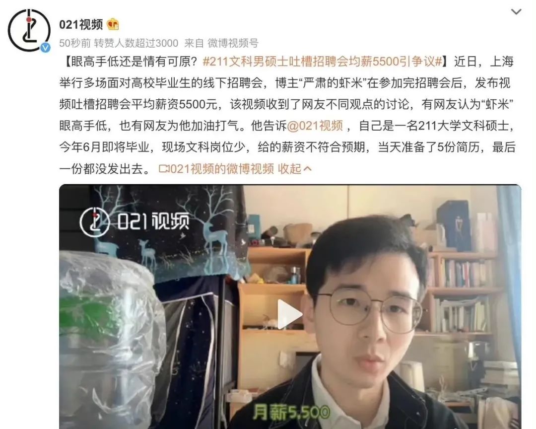 前段时间,博主“严肃的虾米”参加完上海针对高校毕业生的线下招聘会后吐槽,文科生就业太难了。