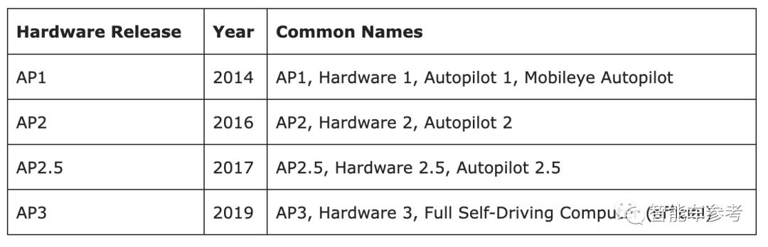 HW是Hardware的缩写,“HW+数字”代表着特斯拉自动驾驶硬件所属第几代。特斯拉在HW1.0时代使用的是Mobileye的EyeQ系列芯片,HW2.0时代辅助驾驶计算芯片更换为英伟达的Drive PX2。