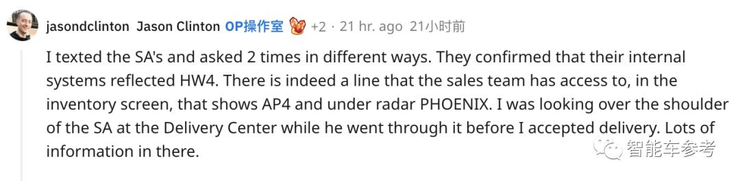 另外也有已经收到车的车主@Jason Clinton,更进一步证实了真实性。
