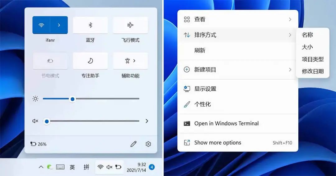 界面设计方面,Win 11 大量应用圆角矩形和毛玻璃设计,系统精致感倍增。