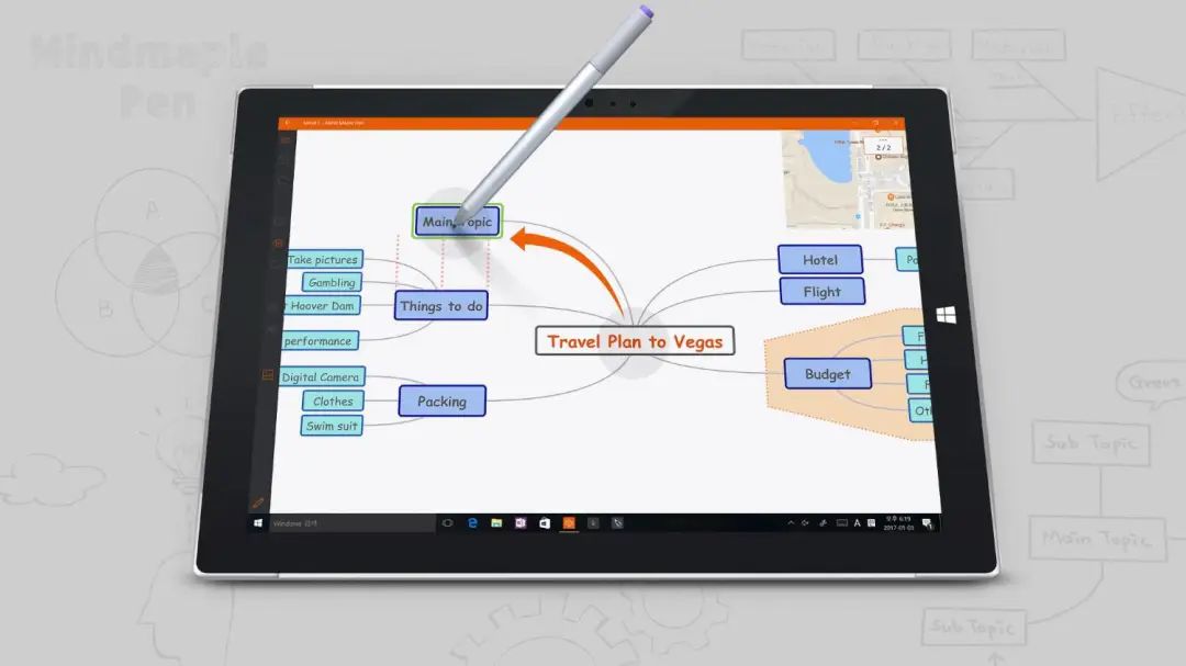 这是一款思维导图应用,特别适配了 Surface Pen。你可以使用 Surface Pen 来拖动图框的位置与层级关系,同时可以手写输入、画图标记,将 Surface 的触摸屏、触控笔的作用发挥到最大。