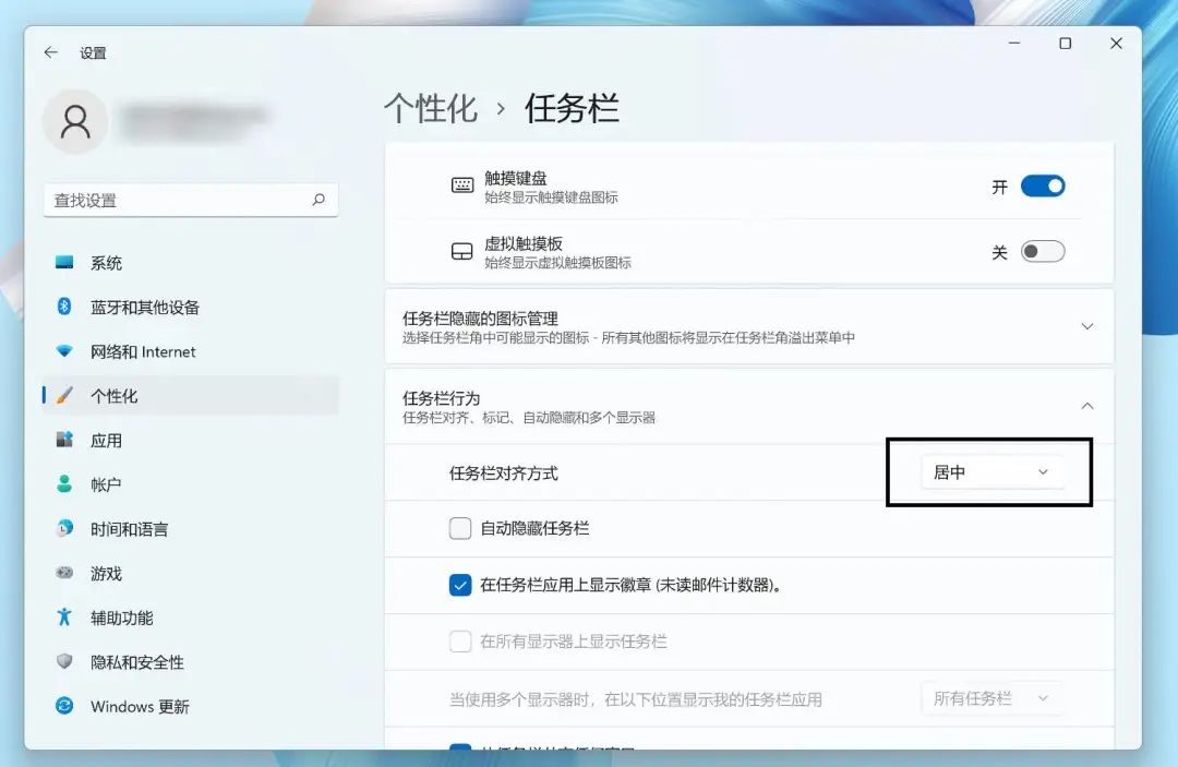 在「设置>个性化>任务栏>任务栏行为」,可以选择任务栏的对齐方式,让开始菜单居左摆放,当然,键盘的「Win」键是可以快速打开开始菜单的,设置和使用根据自己的习惯就好。