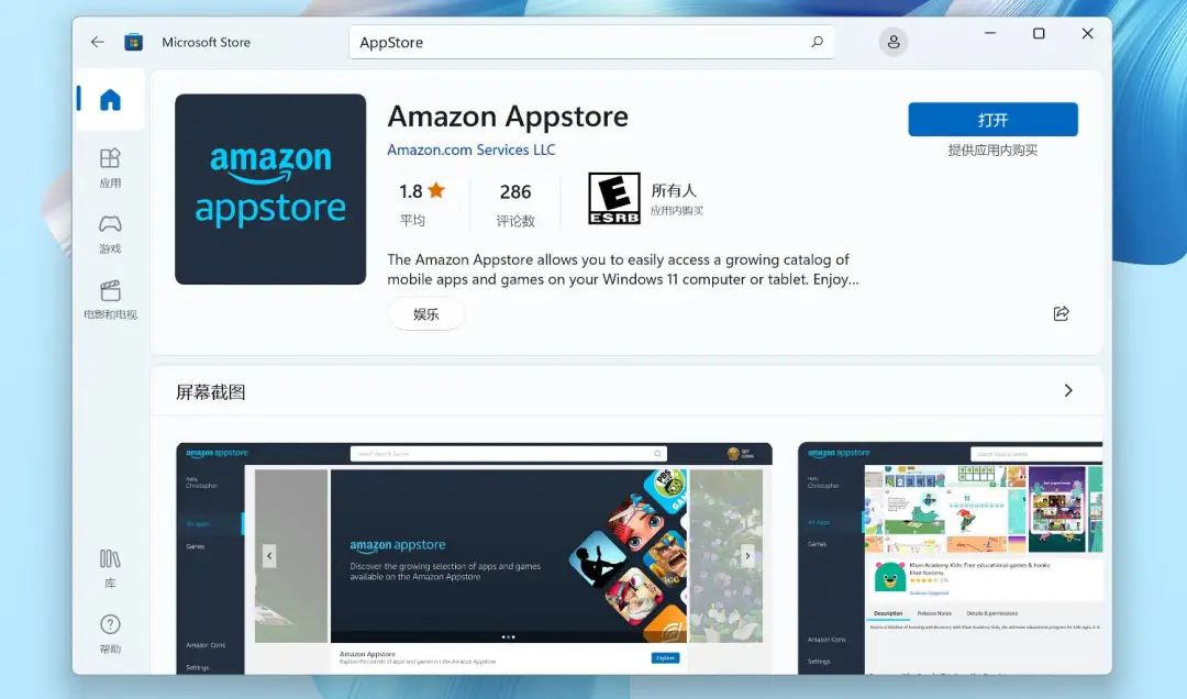 Windows 11 使用 Android 应用需要借助 Android 子系统,作用相当于系统模拟器,下载亚马逊 App Store 时系统会自动下载安装子系统(需把地区调整到美国)。