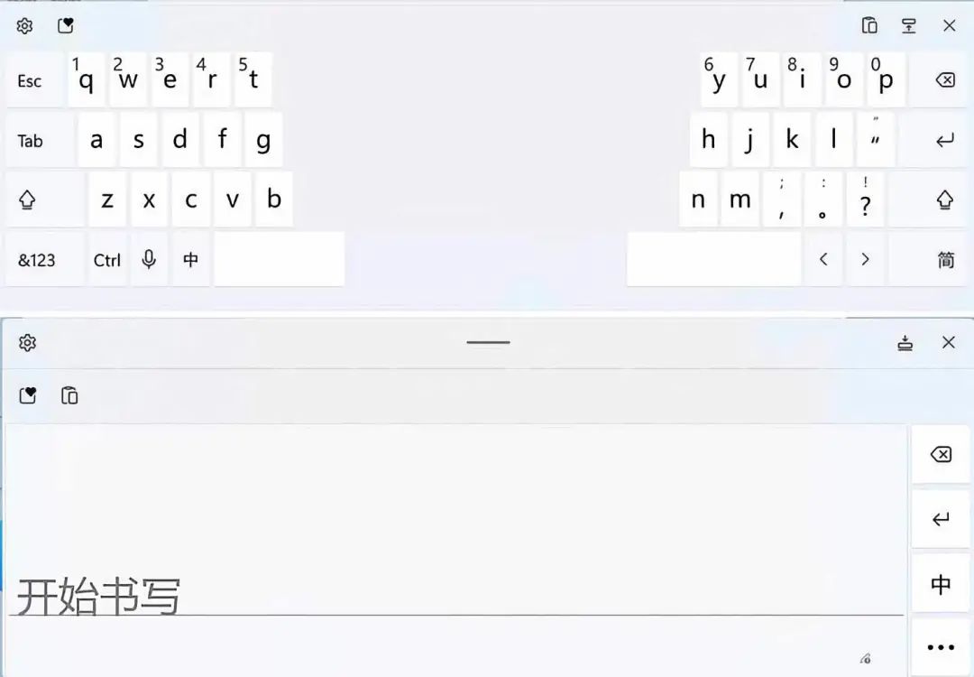 桌面键盘也进行了全面优化,Win11 内置了多款皮肤,从灰白到炫彩什么都有,尺寸和特殊模式也均可挑选,手写触屏都很方便。