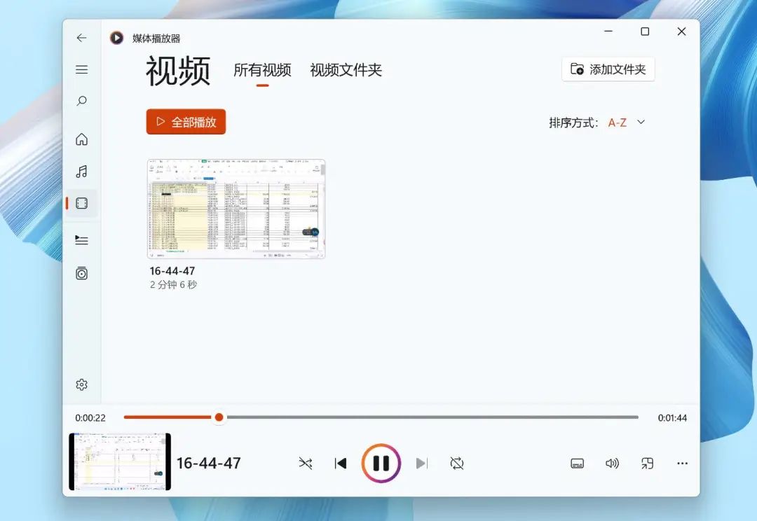 媒体播放器沿用了新的 UI 设计,跟应用商店类似:左侧分类,右侧则呈现更详细内容。主页会显示最近播放过的文件,视频和音乐都有封面展示,起到了本地媒体库和记录回溯的作用。