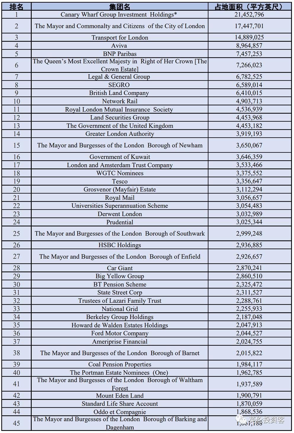 总结来说,从开头的表格来看,持有最多伦敦土地和房产的金主主要包括:中东财团、伦敦市政府、伦敦交通局、保险巨头、英国超市集团、仓储公司、英国传统地产巨头、英国各大银行等。
