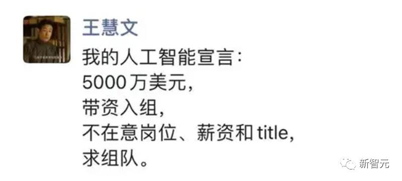 2月13日,已经从美团退休2年的王慧文带着一纸「AI英雄榜」重回大众视野,称自己将拿出5000万美元「带资入组」,且「不在意岗位、薪资和title,求组队」。