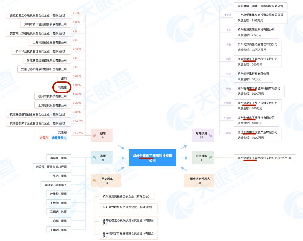 天眼查显示,易露营、订单来了背后运营主体是湖州全都来了网络科技有限公司,“来了来了”,仿佛是蒋晓莹在用特殊的方式回应着父亲的暗示。