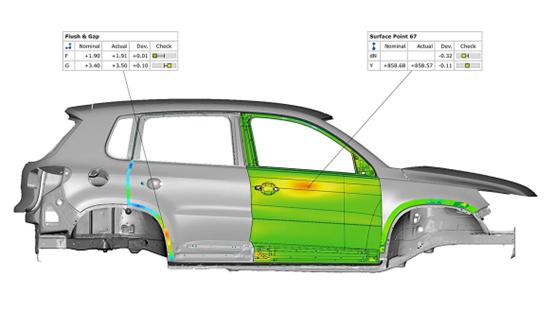 借助来自蓝光 3D 扫描仪的数字孪生数据,可以将汽车车身和悬挂组件放在一起,以数字方式验证它们在现实世界中的组合方式。