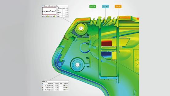 使用智能 3D 计量软件和准确的蓝光 3D 扫描仪收集的高分辨率数据,制造商可以通过将物理零件的数字孪生置于虚拟夹紧状态来模拟此过程,从而可以像检查零件一样检查尺寸已经处于总装状态。用于翘曲虚拟补偿的算法可以在没有机械夹具的情况下检测过度约束的基准条件。