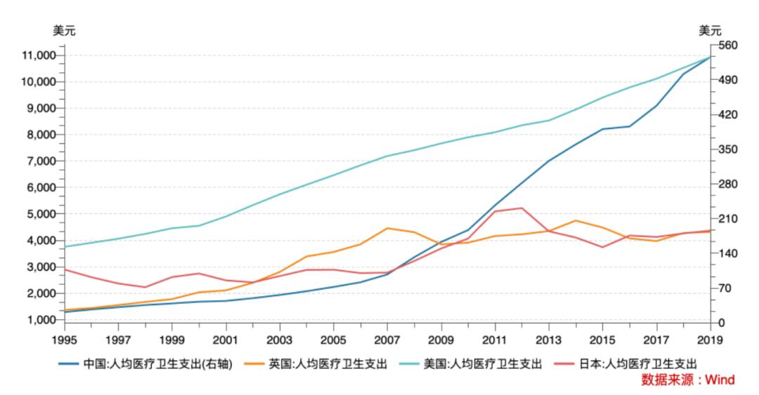 各国人均医疗卫生支出;资料来源:wind,36氪