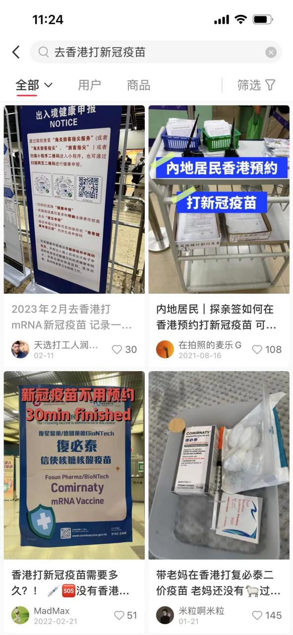 由于在香港上市的非规划类的疫苗品种丰富,加之往来便个利,去香港自费接种疫苗成为主动健康管理的首选途径,早前HPV疫苗的接种热潮就已经证明了这一点。通关的消息发布之后,抖音、微信、小红书等社交平台关于去香港旅游购物和打疫苗的攻略科普帖又多了起来,接种mRNA新冠疫苗亦是热搜之一。