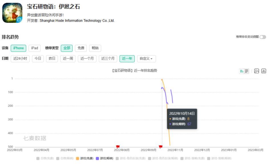 《宝石研物语:伊恩之石》是上海茉丘莉文化旗下宝石研工作室开发的一款回合制RPG游戏,也是《宝石研物语》系列的第三部作品。米奈瓦互娱负责其在日本的发行工作,国服方面则交给了B站负责。游戏国服已在2022年10月上线,但不到一个月就掉出了iOS双榜前500名。