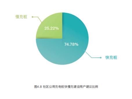 对于社区公用充电桩的快慢充建设方面,74.78%用户建议建设快充桩,25.22%用户建议建设慢充桩。
