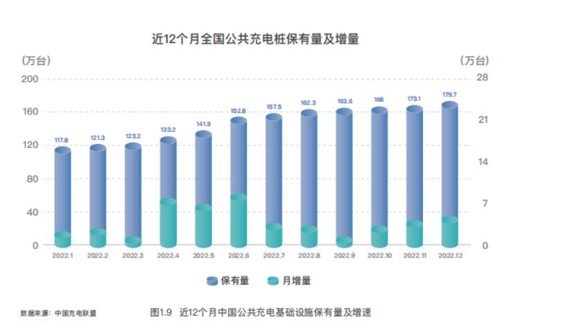 2022年,我国充电基础设施数量达到521万台,同比增长99.1%,其中,公共充电基础设施179.7万台,同比增长56.67%。