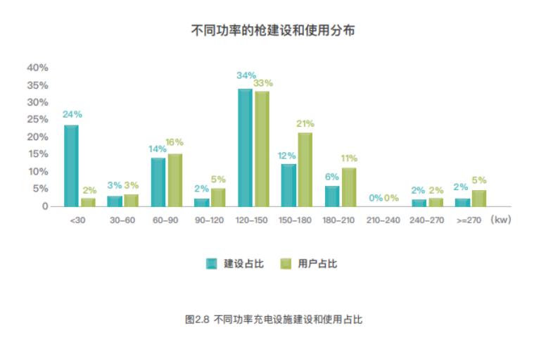 但眼下的事实是,30KW以下充电设施建设占比为24%,充电用户占比仅有2%。120KW-210KW,充电设施建设占比为52%,充电用户占比到达65%。