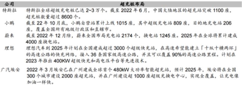 国内部分车企大功率快充桩布局情况,资料来源:上海证券