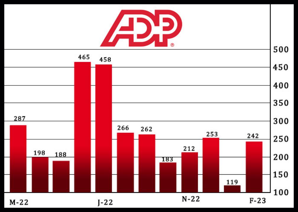 此外ADP公布的2月民间就业人口增长24.2万人,高于市场普遍预期的20万人。ADP还追踪了那些留任员工的薪资增长情况,上月增幅降至7.2%,为去年以来的最低增幅。这份持续火热的就业数据将为美联储下一次加息50基点提供更多证据支持。