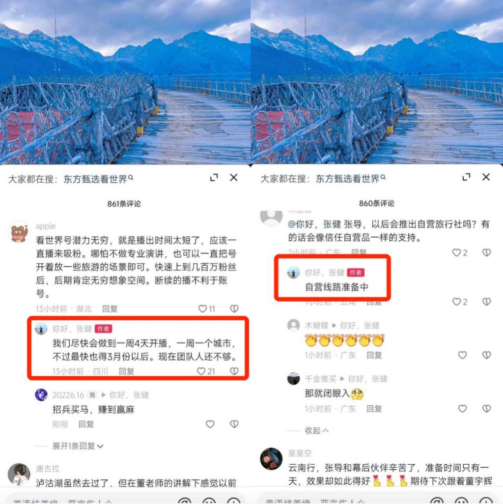随着旅游复苏,东方甄选直播团队导演张健在抖音透露已经在准备自营路线,计划3月份以后一周做一个城市。