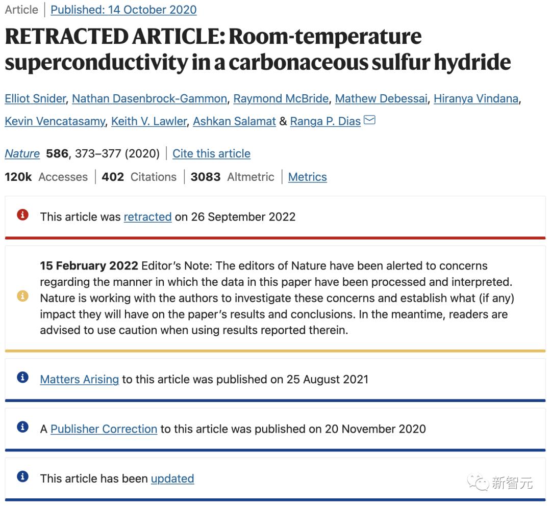 然而呢,这位Ranga Dias却有「黑历史」的前科。一年前,他发在Nature上的C-S-H室温超导文章曾被撤稿,如今他又带着N-Lu-H的室温超导卷土重来。