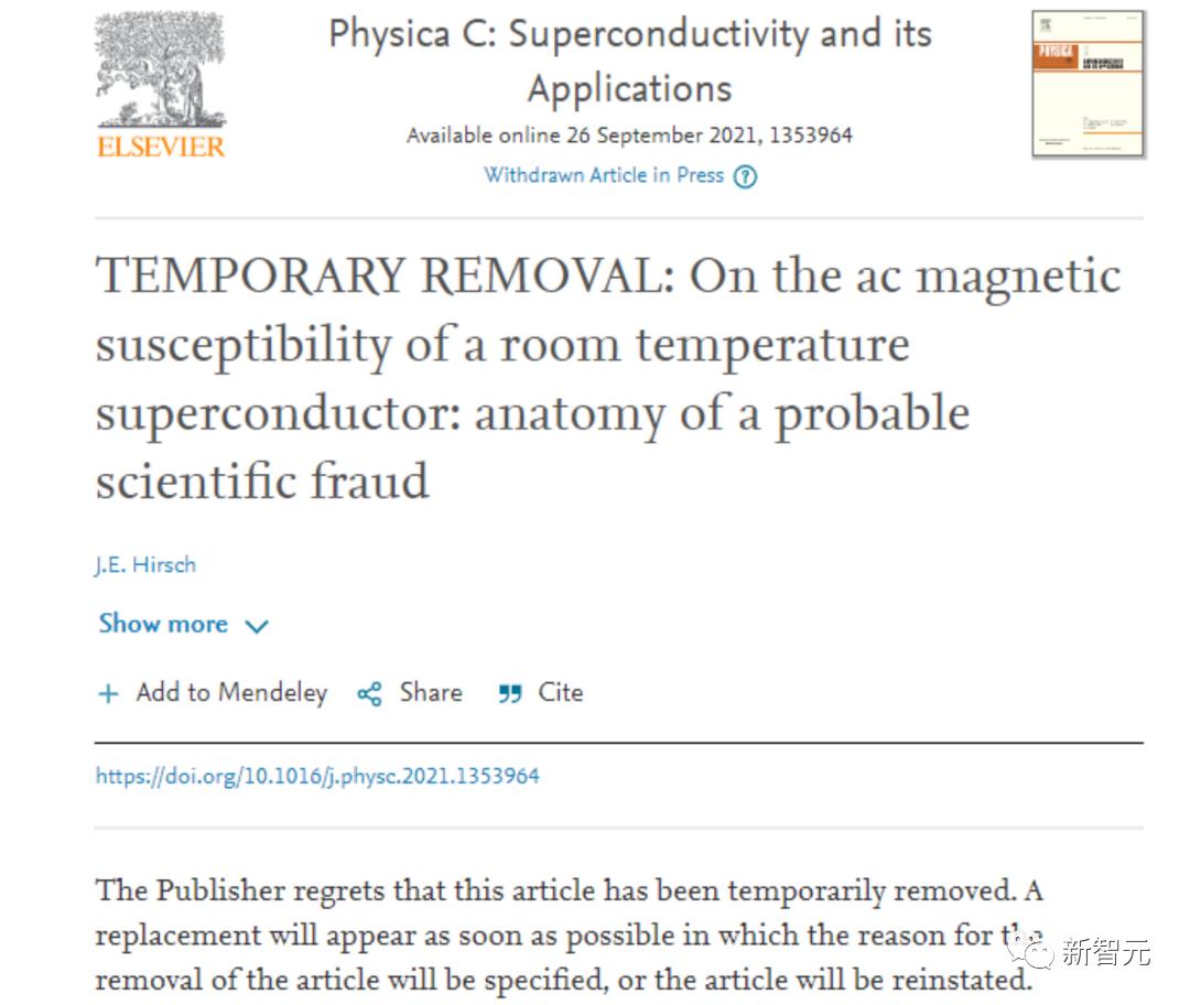 Hirsch随后发表的几篇批评Dias的论文被删除,arXiv甚至将其禁言6个月。这是否意味着Dias的胜利呢?