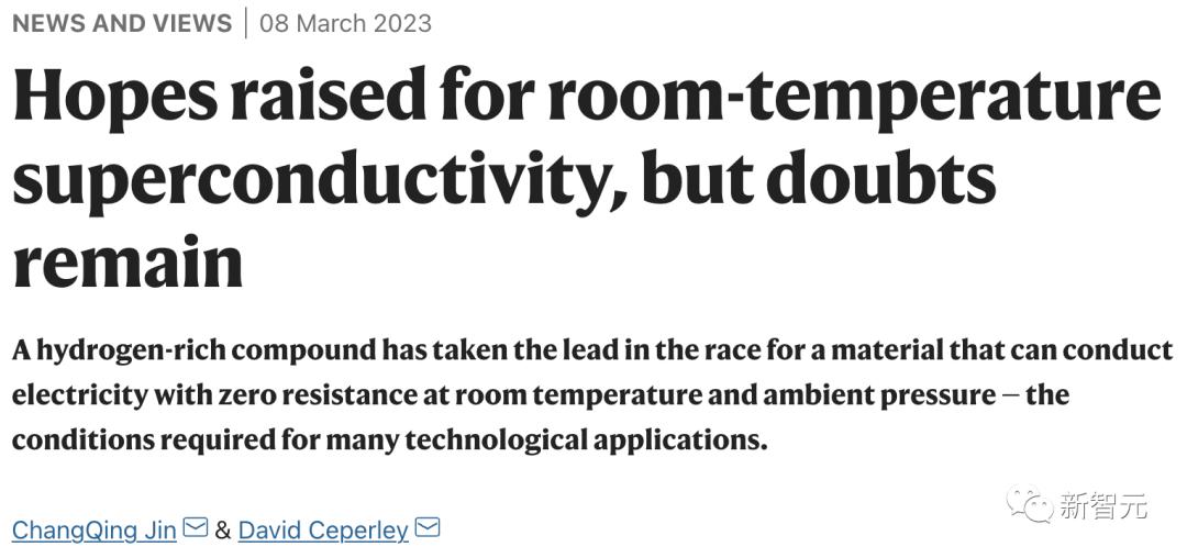 Nature称,如果氢-氮-镥三元化合物确实是实现了室温超导,那么它在实现如此高的转变温度中的作用还有待确定。