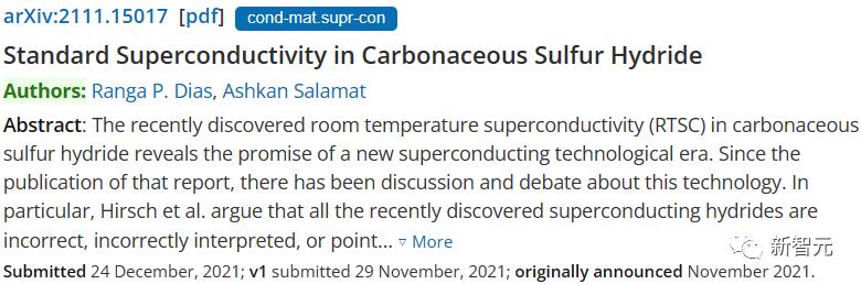 上个月他们还在arXiv发表新文章,重新测量了受到质疑的各项数据。但这次超导现象出现的温压条件为133Gpa、260K,与之前研究中所称的267Gpa、288K并不相同。