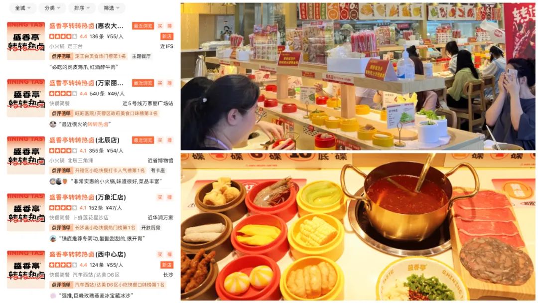 值得注意的是,率先崭露头角、且在2021年连续完成两轮融资的长沙热卤品牌【盛香亭】,在2022年4月份,推出了新的门店形象——【盛香亭转转热卤】,定位小火锅或者快餐简餐,目前在长沙共有五家门店。