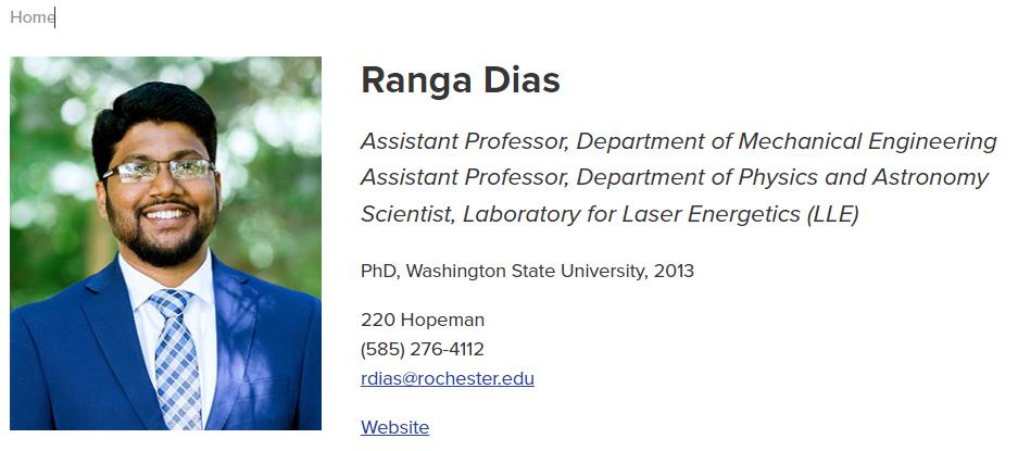 兰加·迪亚斯教授(图片来源:罗彻斯特大学官网)