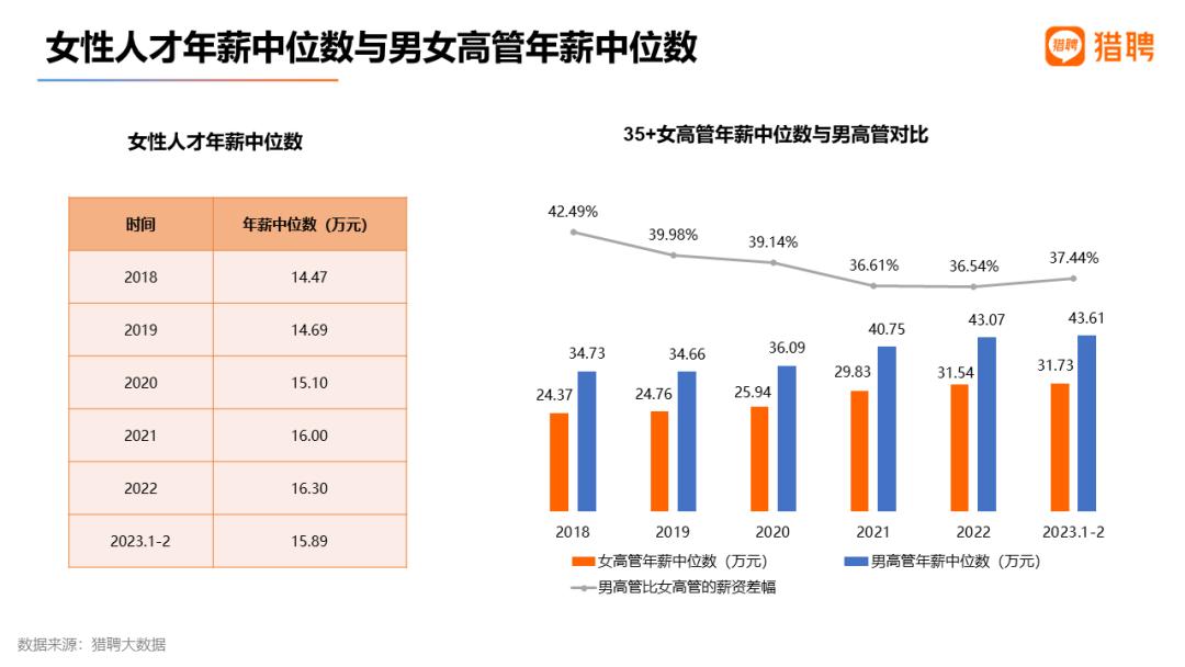 女性人才薪资整体持续上涨,女高管和男高管薪资差距缩小
