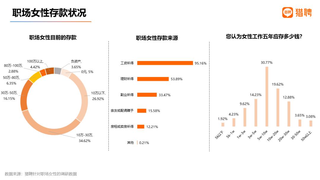 超3成职场女性有10万-30万存款,3成认为工作五年应存5万-10万