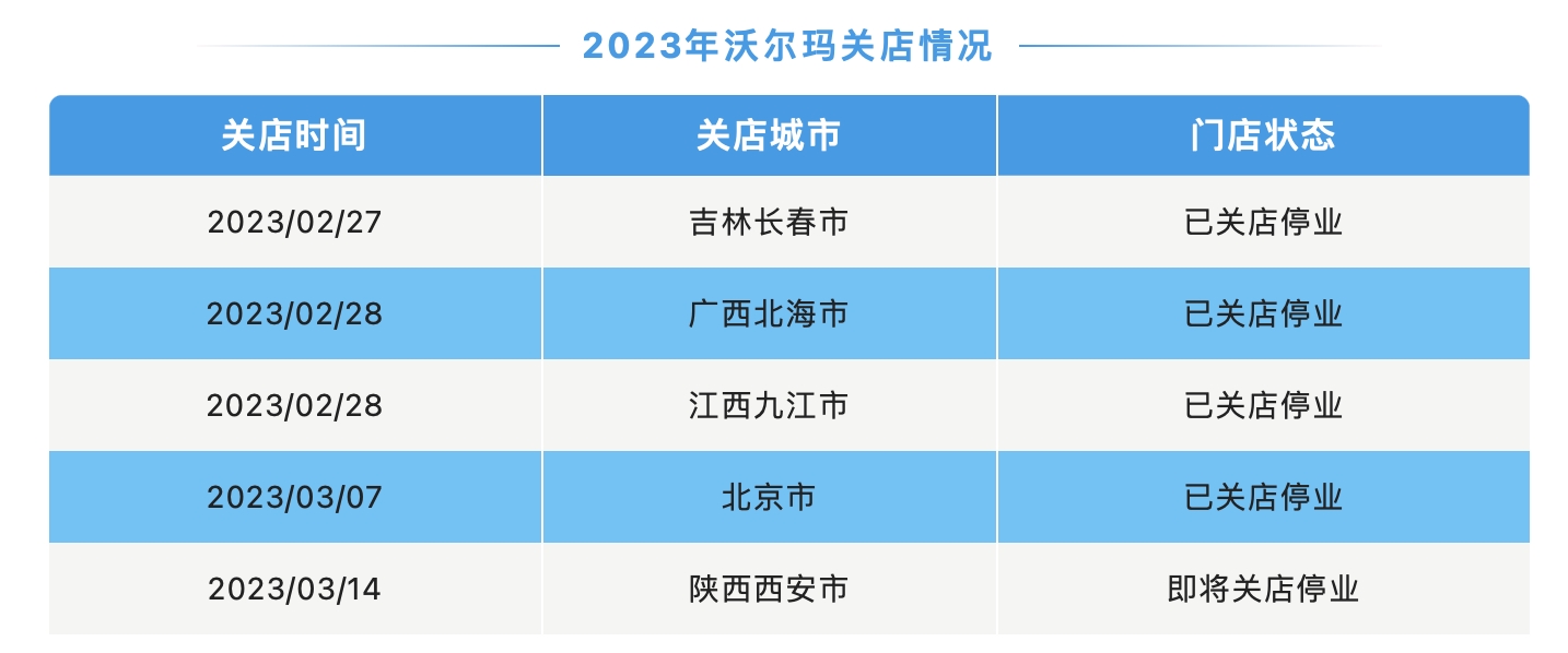 02 沃尔玛开春至少关5家门店,涉及陕西、江西、广西、长春等地