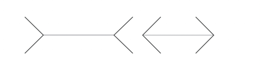 在我们看来,这两条线段的“长度”是不同的,但事实并非如此,它们的长度完全相同,只不过箭头指向相反的方向。在大脑的帮助下,眼睛欺骗了我们。当我们这些生活在现代社会的人被要求估计哪条线段更长时,虽然这项任务很简单,但我们往往会给出错误的答案。这就是众所周知的缪勒—莱尔错觉。