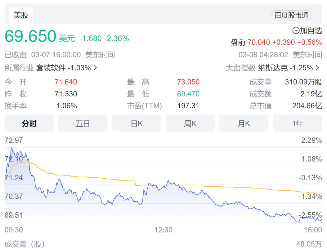 但自人们生活逐步恢复常态后,Zoom就不再是欧美市场的当红炸子鸡,股价大幅回落。截止发稿前,Zoom的股价为69.650美元/股,总市值204.66亿美元,跟巅峰时期超1500亿美元相比,蒸发了上千亿美元。