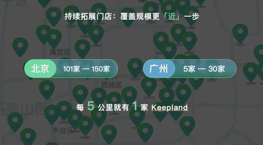 Keep称,截至目前,Keepland 已在北京、广州共设有106家合作门店,累计入职教练近500人,基本覆盖用户5公里内生活半径。